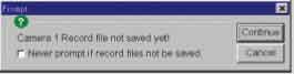 The IP Multicast System's recording file will be stored in a "Temporary Record Buffer". This buffer can only store one file at a time. If you try to record a second file then the following message will appear to notify you that your first file is not save yet. If you click [Continue] then the first file will be over write by the second file. To avoid