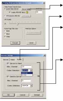 Click on the [Audio] tab in the "Server Setup" dialog box to access WebCam Audio Setup.